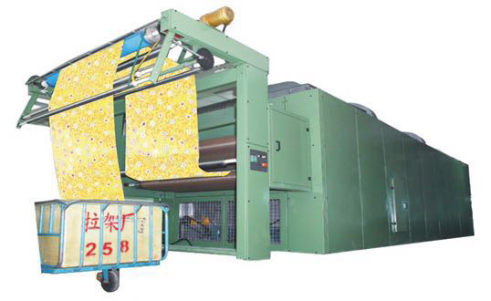 通过数个导辊,张力调整辊,对中辊的综合调节,使面料能够以良好的张力状态附于规定尺度的导带上面,对于针织面料等高张力、高弹性的面料,可选择配置专用面料储存器等辅助装置,以期达到面料的经纬方向保持在一个伸缩率上。