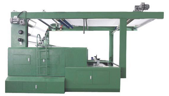 机头进布部分含有主机机头、大辊简以及无张力进布系统。进布系统通过数个导辊,张力调节辊,对中辊的综合调节,使面料能够以良好的张力状态附着于规定尺度的导带上面,对于针织面料等高、高弹性的面料。可选择专业面料储存器等辅助装置,以期达到面料的经纬方向保持在同一个伸缩率上。